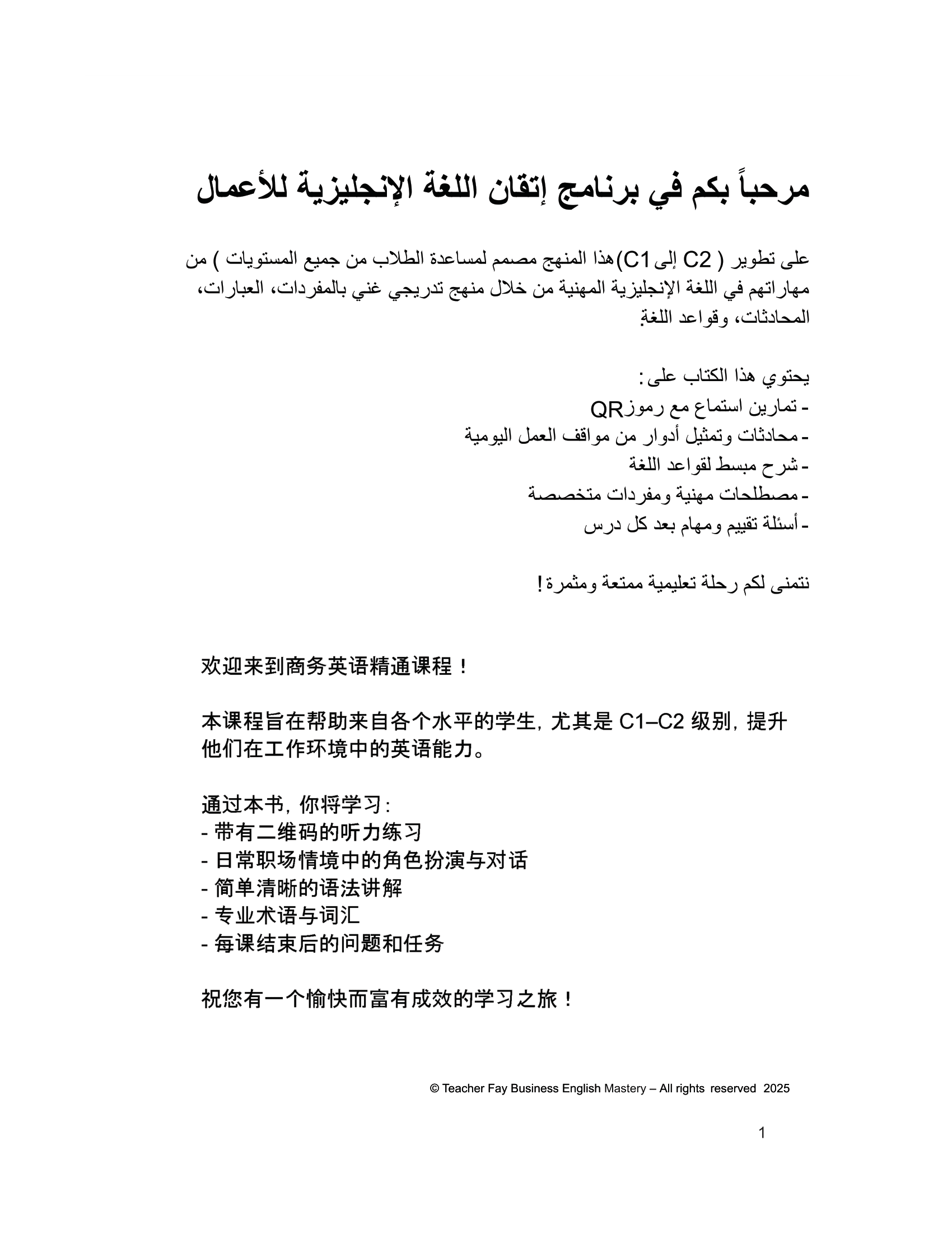 Perfect for executives, entrepreneurs, and advanced learners who want to achieve full mastery of Business English.